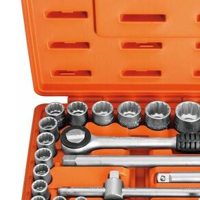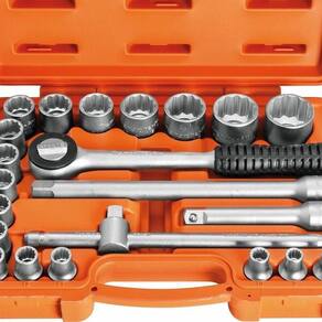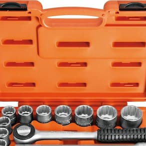 Especificações Sistema: Hyper Drive Material: Aço Cromo Vanádio Acabamento: Cromado Norma: DIN 3124 Tamanho dos Soquetes: 8, 9, 10, 11, 12, 13, 14, 15, 16, 17, 18, 19, 21, 22, 24, 27, 30, 32 mm Itens Inclusos Maleta com Soquetes Estriados e Acessórios 1/2'' Milímetros 22 Peças Tramontina PRO Indicações de Uso Ideal para reparos domésticos e manutenção em geral. Perfeito para oficinas mecânicas e trabalhos de montagem. Excelente para uso em construção civil e instalações industriais. Perguntas Frequentes (FAQ) Pergunta: Qual o material dos soquetes?