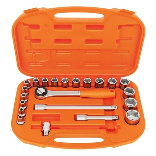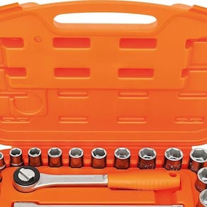 Especificações Sistema Hyper Drive: Melhora o acoplamento e reduz tensões no aperto Material: Aço cromo vanádio Acabamento: Cromado Perfil: Hyper Drive (cantos arredondados) Norma: DIN 3124 Quantidade de peças: 22 Itens Inclusos Maleta com Soquetes Sextavados e Acessórios 1/2'' Milímetros 22 Peças Tramontina PRO Indicações de Uso Ideal para reparos domésticos em geral, como montagem de móveis e consertos de eletrodomésticos Perfeito para oficinas mecânicas e trabalhos de manutenção automotiva Excelente para montagem e desmontagem de estruturas metálicas e equipamentos industriais Perguntas Frequentes (FAQ) Pergunta: O que é o sistema Hyper Drive?
