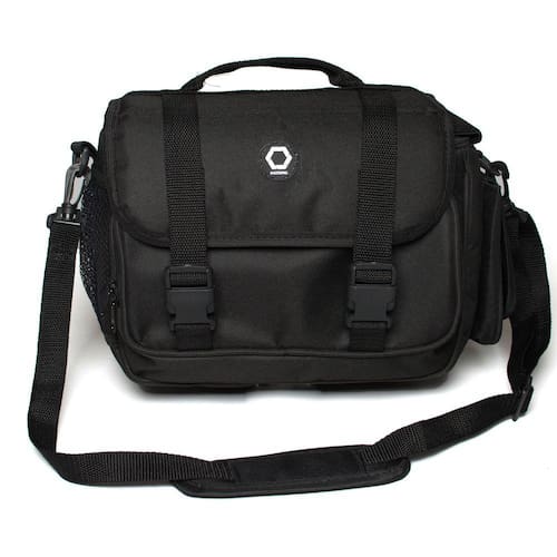 Proteja seu equipamento de filmagem ou fotografia utilizando esta incrível bolsa da Photopro extremamente pratica, compacta, segura e semi-impermeável você terá a consciência tranquila de que esta protegendo seus investimentos em equipamentos. Confeccionada em nylon 1200 na parte externa e em espuma Pack e EVA de 10mm para absorver pequenos impactos, seu interior é acochado para não riscar sua câmera, e protege-la para o aumento da vida útil. Alça de mão e tiracolo, compartimento e bolsos frontais e laterais para carregar cartões de memória, pilhas, cabos e carregadores, etc. 2 divisorias internas removiveis Características: Dimensões Aproximadas CxLxA : 26 x 19 x 20cm Dimensões Internas CxLxA : 21 x 14 x 17cm Cor: Preta Câmeras Compatíveis: - Nikon: D3100 D5100 D7100 P320 P520 L820 D90 Canon: T3 T5 60d 70d 5d 6d 7d - Sony Alpha: Hx300 Hx400 H300 H400 A37 A3000 - Fujifilm: Sl1000 S8200 Hs30 S4000 Entre outros modelos, verificar o tamanho da bolsa para saber se é possível comportar sua câmera e acessórios.