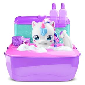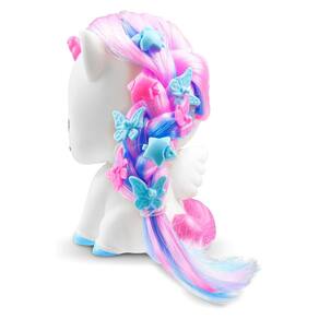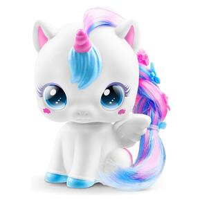 Contém: 1 maleta, 1 unicórnio, 1 chuveirinho, 1 escova, 1 secador, 1 frasco para shampoo, 1 frasco para condicionador, 1 saquinho surpresa com 12 presilhas para cabelo.