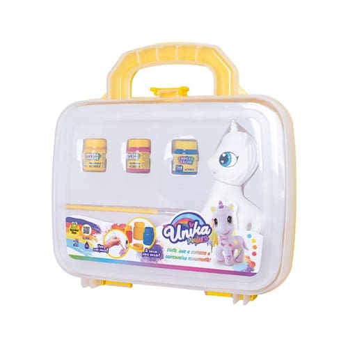 Maletinha de Pintura Unicórnio Kit Unika - Samba Toys Informações do Produto: A maletinha de pintura de unicórnio unika é ideal para os pequenos mostrarem seus dons artísticos. Divirta-se colorindo seu unicórnio, pinte, lave e comece a brincadeira novamente. Após a primeira lavagem o produto poderá apresentar manchas. As cores das tintas podem variar.