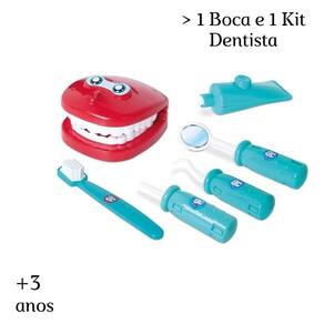 idade recomendada: + 3 anos. Fabricante: samba toys material: plastico. Dimensões aproximadas da embalagem cxlxa : 32 cm x 7 cm x 28 cm. Contém na embalagem: 01 boca e 1 kit de dentista. Imagem meramente ilustrativa