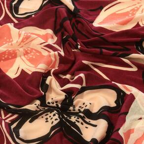 - Tecido Malha Liganete Estampado Floral Flores Fundo Marsala