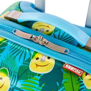 Mala de Viagem Pequena com Rodas 360 Sestini Kids Dino 3 - Colorido possui carrinho embutido em alumínio, 4 rodas com sistema de giro 360, puxadores com trava para cadeado, estampa exclusiva, alça de mão emborrachada, limitador de abertura, TAG identificador, bolso interno com zíper, organizador interno e fechamento com zíper