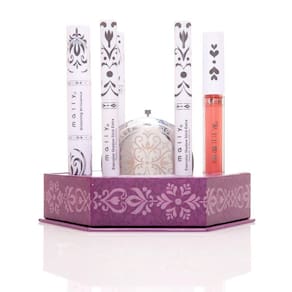 inclui dois Evercolor Shadow Stick Extras de 0,06 oz em Goldstone e Soft Brown, um Evercolor Gel Waterproof Liner de 0,01 oz em Avelã, um Pretty Perfect Mascara de 0,31 oz, um Blushing Brilliance Blush de 0,13 oz e uma Varinha de Marcador em Dreaming and Playful, um Lip Gloss de 0,06 fl oz em Anna e espelho