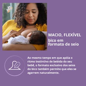 Ao mesmo tempo em que apóia o ritmo instintivo de bebida do seu bebê, o formato exclusivo dos seios do bico também permite que eles se agarrem naturalmente.