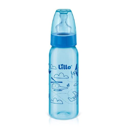 - Conteúdo da Embalagem: 1 Mamadeira Divertida Azul 240ml Lillo