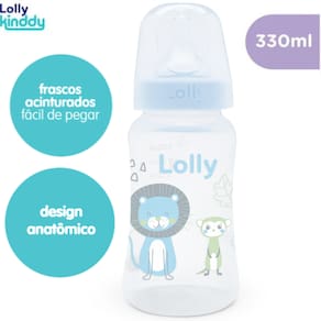 Mamadeira Lolly Big Zoo 330ml Bico Silicone super macio Tampa Protetora Não vaza, fácil de higienizar Design Anatômico Materiais Resistentes Sem BPA 100% não tóxico + 3 meses