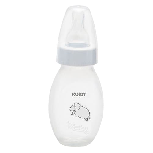 MAMADEIRA KUKINHA BRANCA KUKA A Mamadeira Kukinha foi pensada para bebês de 0 a 3 meses. Seu frasco decorado oferece praticidade no dia a dia e ainda pode ser apoiado em superfícies planas para evitar