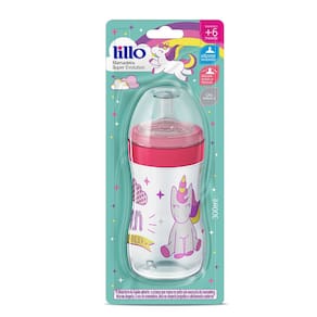 MAMADEIRA LILLO SUPER EVOLUTION BICO DE SILICONE +6 MESES DESENHOS diversos ROSA 300ML Tamanho 2. +6 meses. Silicone macio e flexível. 0% bisfenol- A. Tampa encaixa embaixo. Silicone redondo. Gargalo