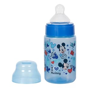 MAMADEIRA MICKEY MOUSE 300ML WIDE NECK ORTO SIL CX - BABYGO A mamadeira Mickey Mousse da Babygo conta com um essencial cuidado e qualidade, tudo pela segurança da criança, com bico e material de qualidade, é ideal para o bebê. Possui design exclusivo da Disney Baby. VALIDADE: O8 ANOS. MODO DE USAR: - Antes de cada uso colocar o bico e a mamadeiras em água fervente por, pelo menos, 5 (cinco) minutos;- Antes de cada uso, examinar se o bico apresenta alguma perfuração, descartando o caso esteja;- O furo do bico já está na medida exata não necessitando aumentá-lo, sob risco de provocar asfixia;- Para prevenir cáries dentárias, não mergulhar o bico em substâncias doce;- Não utilizar a mamadeira sem supervisão constante de um adulto;- Verifique constantemente o estado de conservação de todos os componentes da mamadeira; caso algum deles apresentem danos ou sinais de desgastes, substitua o produto imediatamente. Composição do Produto: Frasco e Componentes = Polipropileno, Bico = Silicone.