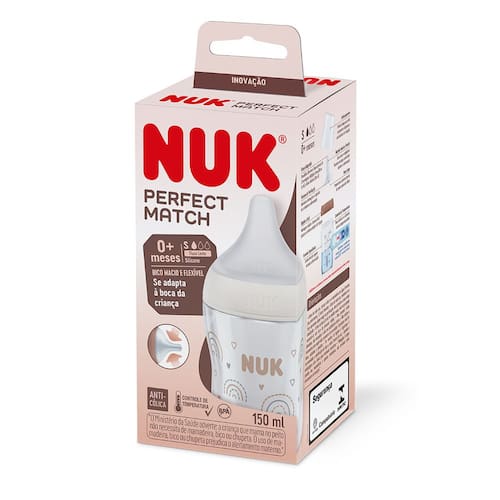 NUK Perfect Match - Mamadeira 150ml Descubra a NUK Perfect Match, a mamadeira projetada para acompanhar os primeiros momentos do seu bebê! Com capacidade de 150ml, essa mamadeira é perfeita para recém