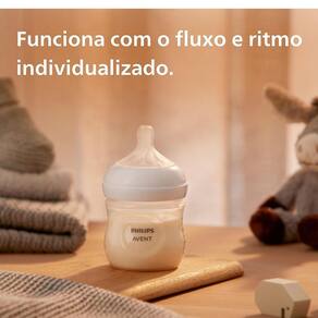 O bico com formato largo é feito de silicone e o copo em polipropileno, fácil de limpar, com uma montagem rápida e prática, combina amamentação natural com a mamadeira. As pétalas no bico aumentam a flexibilidade e promovem a pega correta, para que o bebê possa abocanhá-lo como se fosse o seio, facilitando a o ritmo da amamentação.