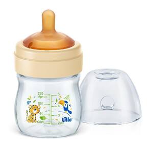 Com capacidade para até 150ml, ela possui formato de frasco mais acinturado que facilita as crianças a segurar. Além disso, ela conta com uma válvula integrada que reduz a ingestão de ar durante a alimentação e possui tampa antivazamento que fecha de forma eficaz e mantém o bico protegido durante o transporte. Seu bocal é largo e facilita a limpeza e o preparo dos alimentos se torna muito mais fácil.