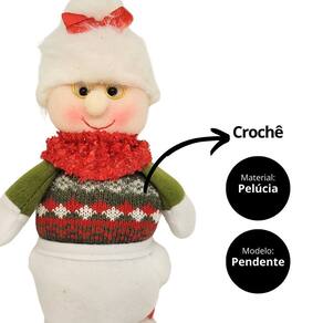 Adicione um toque encantador e aconchegante à sua árvore de Natal com este enfeite pendente de Mamãe Noel. Feito em pelúcia de alta qualidade, o boneco possui acabamento delicado, complementado por gorrinho de crochê, trazendo um charme artesanal à decoração. Com 30 cm de altura, é perfeito para árvores de natal ou para destacar em outros ambientes natalinos.