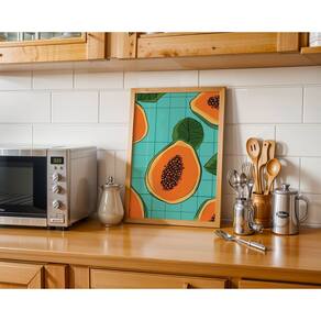 Mamão na mesa - 50 x 70 Caixa (canvas) - Vidro: Com Vidro | Cor: Preta