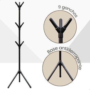 Com 9 ganchos, suporte e extremidade em emborrachado para maior estabilidade, é prático, resistente, e não ocupa muito espaço.