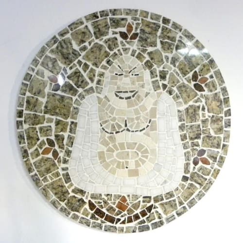 É uma peça de arte decorativa que combina os princípios da mandala, uma representação simbólica do universo na cultura budista, com a figura do Buda. Este tipo de decoração é frequentemente utilizado em ambientes onde se deseja criar uma atmosfera tranquila e espiritual, como salas de meditação, espaços de yoga ou mesmo em residências como um elemento decorativo que evoca paz e serenidade.