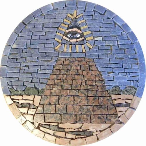 é uma peça decorativa que combina elementos simbólicos maçônicos com o icônico Olho da Providência, que é encontrado na nota de um dólar dos Estados Unidos.