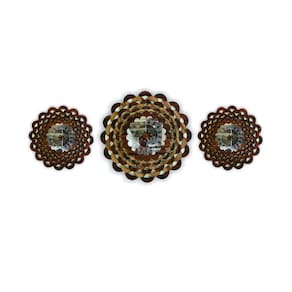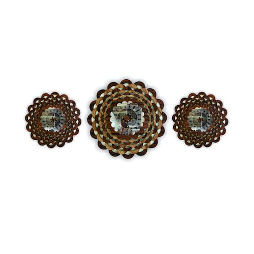 Mandala Decorativa Ambiente Sala Quarto Kit 3 Peças 38172 Cod: 38172 Simbologia As mandalas pelos seus círculos e desenhos representam a concentração de energia no ambiente que estão. Universalmente a mandala é o símbolo da integração e da harmonia. Além do componente místico, as mandalas tem tomado o seu espaço na decoração e harmonização de ambientes. Kit composto por: 3 peças Características Medidas 1 peça: Espessura: 4 cm Altura: 65 cm Largura: 65 cm 2 peças: Espessura: 4 cm Altura: 45 cm Largura: 45 cm Composição: mdf de e acrílico espelhado Cor: Marrom e prata Fixação: acompanha pendurador garrinha que permite a regulagem da mandala. Ambientes Podem ser usadas para decoração de salas, quartos, banheiros, cozinhas, ambientes comerciais e outras aplicações que sua imaginação e bom gosto permitirem. : 3 meses contra defeito de fabricação. Limpeza: Utilizar um pano levemente umedecido. Se houver necessidade utilizar lustra móveis, de preferência o Poliflor para limpeza e brilho. Marca: Creatus