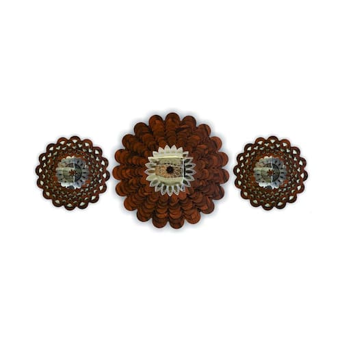 Mandala Decorativa Ambiente Sala Quarto Kit 3 Peças 38173 Cod: 38173 Simbologia As mandalas pelos seus círculos e desenhos representam a concentração de energia no ambiente que estão. Universalmente a mandala é o símbolo da integração e da harmonia. Além do componente místico, as mandalas tem tomado o seu espaço na decoração e harmonização de ambientes. Kit composto por: 3 peças Características Medidas 1 peça: Espessura: 4 cm Altura: 65 cm Largura: 65 cm 2 peças: Espessura: 4 cm Altura: 45 cm Largura: 45 cm Composição: mdf de e acrílico espelhado Cor: Marrom e prata Fixação: acompanha pendurador garrinha que permite a regulagem da mandala. Ambientes Podem ser usadas para decoração de salas, quartos, banheiros, cozinhas, ambientes comerciais e outras aplicações que sua imaginação e bom gosto permitirem. : 3 meses contra defeito de fabricação. Limpeza: Utilizar um pano levemente umedecido. Se houver necessidade utilizar lustra móveis, de preferência o Poliflor para limpeza e brilho. Marca: Creatus Ean: 7893804002911