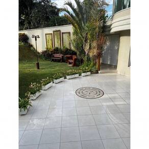Pedras utilizadas: Granito Vermelho Brasília, Mármore Branco espirito santo e Travertino Bege. Os tons podem variar conforme o lote das pedras