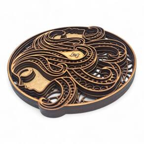 Características gerais: Material: MDF Tamanho: 17 cm de diâmetro Estilo: Mandala com símbolos do signo de Gêmeos (geralmente com Gêmeos estilizados, o símbolo ou temas astrológicos) Uso: Decoração de parede, prateleiras, mesas ou até mesmo como parte de um altar ou cantinho espiritual
