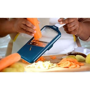 O mandoline manual da linha Gourmet da Prana é um produto de altíssima qualidade, com lâminas de alta precisão para fatiar ou cortar Juliene.