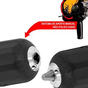 - Aperto Rápido Sem Chave: O aperto rápido elimina a necessidade de uma chave para fixar o mandril, proporcionando maior comodidade ao operador. A capacidade de colocar e retirar acessórios apenas com as mãos agiliza o processo de trabalho.