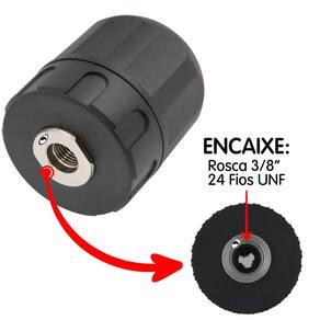 - Versatilidade de Aplicação: Projetado para uso em furadeiras manuais e parafusadeiras a bateria, o mandril é adaptável a diferentes equipamentos, ampliando sua aplicação. No entanto, é importante observar a restrição de uso em martelos ou marteletes na função com impacto.