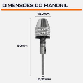 Mandril Aperto Rápido 0.4 a 3.4mm Haste 2,35mm para Micro Retíficas Dremax - Marca: Dremax - Referência: MD038 - Capacidade do mandril: 0.3 a 3.4mm - Diâmetro da Haste: 2,35mm - Para uso com micro retíficas Dremel, Black Decker, Charbs, Einhell, Fort, Vonder, Dremax e qualquer outra marca que possua pinça de 3mm - Garantia: 90 dias contra defeitos de fabricação A DREMAX é a primeira e única marca brasileira dedicada exclusivamente às micro retíficas, acessórios e acoplamentos para esta indispensável ferramenta. Seja para trabalhos de precisão, artesanato, modelagem ou reparos, a DREMAX tem o produto certo para você. Marca: Dremax