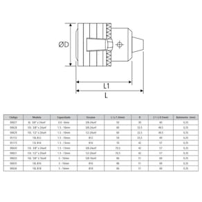O Mandril com Chave Linha Leve é indicado para furadeiras manuais de impacto, coluna, bancada e pneumática, fresadoras, cabeçotes de rosqueamento, tornos e centros de usinagem.