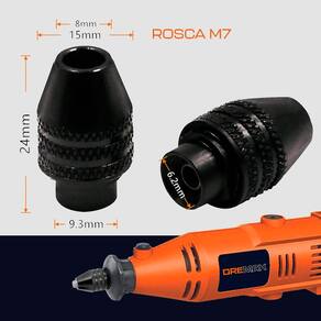 Mandril de Aperto Rápido Rosca M7 x 0.75 Longa para Micro Retíficas Dremax - Marca: Dremax - Referência: MD036 - Para micro Retíficas com Rosca Longa M7 x 0,75 - Mandril ajustável de 0,8mm 1/32 Pol. a 3,2mm 1/8 de polegada - Diâmetro aproximado da rosca das micro retíficas compatíveis: 6.8 a 7mm - Dimensões detalhadas: verifique nas fotos do produto - Resistente e durável - : 90 dias contra defeitos de fabricação A DREMAX é a primeira e única marca brasileira dedicada exclusivamente às micro retíficas, acessórios e acoplamentos para esta indispensável ferramenta. Seja para trabalhos de precisão, artesanato, modelagem ou reparos, a DREMAX tem o produto certo para você. Marca: Não Informado Ean: 7734625983181