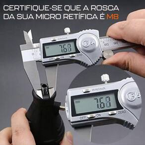 - Marca: Dremax - Referência: MD018 - Para micro Retíficas com Rosca Curta M8 - Mandril ajustável de 0,8mm 1/32 Pol. a 3,2mm 1/8 de polegada - Rosca M8 - Diâmetro aproximado da rosca das micro retíficas compatíveis: 7.6 a 8mm - Passo da rosca: 0,75mm - Dimensões detalhadas: verifique nas fotos do produto - Resistente e durável - Garantia: 90 dias contra defeitos de fabricação