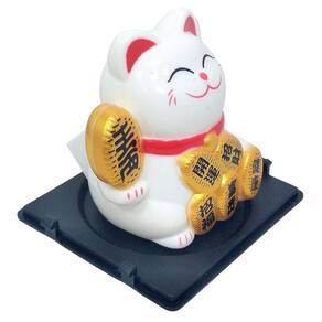 Maneki Neko Gato Da Sorte Branco 5 Cm Alt. Moedas Luz Solar Quem não conhece o Maneki Neko, um dos amuletos do Japão mais Famosos em todo o mundo Conhecido também como Gato da Sorte, esse talismã muito especial Para os japoneses para atrair muita sorte,proteção,prosperidade, Felicidade e saúde.