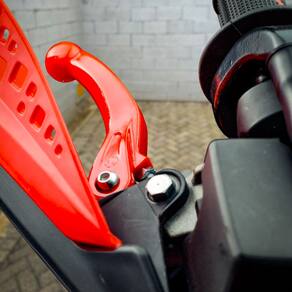 Seu design ergonômico proporciona uma pegada natural que reduz a fadiga muscular em longas jornadas, enquanto as molas especiais permitem que os manetes se retraiam suavemente em impactos laterais, evitando danos permanentes.