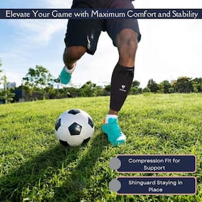 — LUVA DE COMPRESSÃO VIZARI PARA TODAS AS IDADES — A luva de compressão Vasari é adequada para crianças e adultos de todas as idades. Os jogadores usam a manga de compressão sobre uma caneleira que é um estilo slip-in. A manga de compressão mantém a caneleira no lugar —