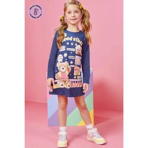 Vestido Infantil Manga Longa Good Vibes Estampado Kukiê Ref: 63958 3/6