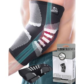 Benefícios das mangas de compressão. - Oferece alívio de tendinite, cotovelo de tenista, cotovelo de golfe e dor geral no cotovelo.