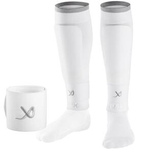 - Design extra longo até o joelho oferece cobertura estendida e proteção para caneleiras durante partidas de futebol.
