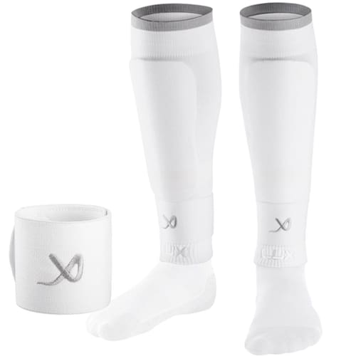- Tecnologia de aderência em silicone combinada com o sistema DualGrip garante que as caneleiras permaneçam firmemente no lugar, sem escorregar.