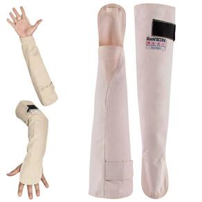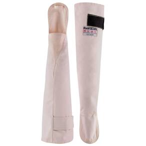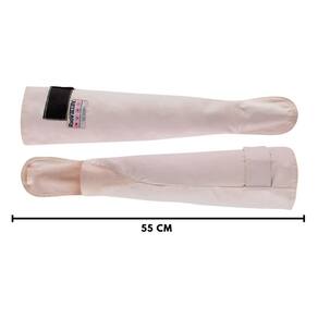 Mangote de segurança confeccionado em tecido de algodão com tratamento retardante a chamas, forrado, com fechamento ajustável por veIcro.