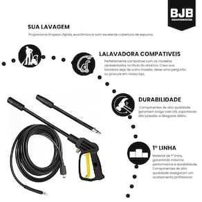 Ferramenta de aplicação de Alta Pressão com Mangueira para Lavadora Descrição do Produto: Otimize a limpeza de sua casa, quintal, carro e muito mais com esta Ferramenta de aplicação de alta pressão de alta qualidade, compatível com diversas lavadoras Karcher. Este kit inclui uma Ferramenta de aplicação ergonômica e uma mangueira resistente, projetadas para oferecer desempenho e durabilidade excepcionais. Características: Alta Pressão: Projetada para suportar até 180 bar , garantindo uma limpeza eficiente e poderosa.Temperatura Máxima: Suporta -05 até 50C, permitindo a utilização de água quente para uma limpeza ainda mais eficaz.Ergonomia: A Ferramenta de aplicação possui um design ergonômico, proporcionando conforto durante o uso prolongado.Mangueira Resistente: Acompanha uma mangueira de alta qualidade, com conexão rápida para facilitar o manuseio e a instalação.Versatilidade: Perfeita para limpar carros, pátios, calçadas, paredes e muito mais.Especificações: Comprimento da Mangueira: 5 metrosPressão: 4 barTemperatura Máxima da Água: 50CMaterial: Plástico ABS de alta resistência e aço inoxidávelConteúdo da Embalagem: 1 Ferramenta de aplicação de Alta Pressão1 Mangueira de 5 metrosVantagens: Durabilidade: Feita com materiais de alta qualidade para garantir uma longa vida útil.Facilidade de Uso: Instalação rápida e simples, compatível com diversos modelos de lavadoras.Desempenho Superior: Ideal para tarefas de limpeza pesada, oferecendo potência e eficiência.: de 3 meses contra defeitos de fabricação.Não perca a oportunidade de adquirir este kit completo para lavadoras e torne suas tarefas de limpeza muito mais fáceis e rápidas Marca: Não Informado