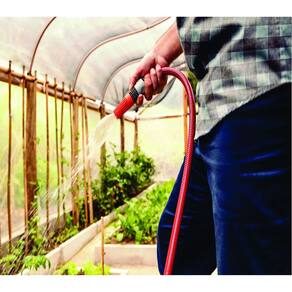 - Mangueira com alta flexibilidade e fácil manuseio.- Não torce e não dobra - permitindo fluxo de água constante.- Possui 30 metros de comprimento.- Recomendada para situações de uso com pressão da água de até 14 bar [203 psi] e temperatura de 50ºC.- Para maior resistência possui 3 camadas distintas: interna em PVC, intermediária em fio de poliéster trançado e externa em PVC.- Acompanha 01 esguicho com jato regulável, 02 engates rápidos e 01 adaptador fêmea com rosca de 3/4" e redução de 1/2".- O esguicho possui prático sistema de regulagem do fluxo dágua através do regulador frontal.- O esguicho é conectado em mangueiras de 1/2", 5/8" e 3/4" através de sistema de engate rápido.