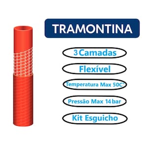 Informações Gerais - Mangueira com alta flexibilidade e fácil manuseio. - Possui 10 metros de comprimento - Para maior resistência possui 3 camadas distintas: interna em PVC, intermediária em fio de poliéster trançado e externa em PVC. - Recomendada para situações de uso com pressão da água de até 14 bar [203 psi] e temperatura de 50ºC. - Acompanha kit esguicho