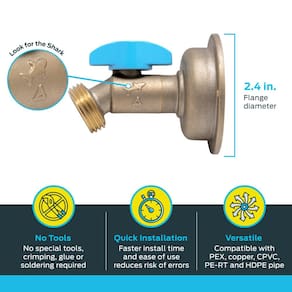 - MANGUEIRA DE 45 GRAUS SHARKBITE BIBB: válvula de fechamento de um quarto de volta com flange e entrada de montagem pode ser usada para regular o fluxo de água; combina uma saída de mangueira de jardim de 3/4 polegadas com 1/2 polegada entrada de pressão para conectar em um ângulo de 45 graus para evitar dobras na mangueira - VERSÁTIL: mangueiras de latão funcionam bem com tubos PEX, CPVC, PE-RT, SDR-9 HDPE e cobre; o babador possui um suporte patenteado de peça única de 2,4 polegadas de diâmetro