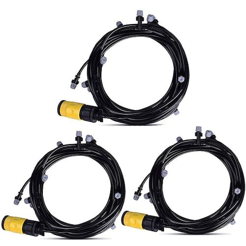 Kit Sistema de Climatização e resfriamento ideal para quintais, varandas, barracas gazebos e locais abafados que necessitam de diminuição na temperatura. A mangueira Possui 10 metros com 10 bicos pulverizadores que distribuem a névoa de água uniformemente pelo espaço, o kit vem com conector para torneiras e com braçadeiras para prender a mangueira em locais suspensos ou verticais.