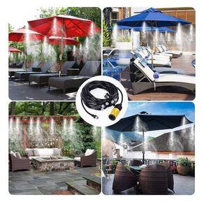 Kit Sistema de Climatização e resfriamento ideal para quintais, varandas, barracas gazebos e locais abafados que necessitam de diminuição na temperatura. A mangueira Possui 10 metros com 10 bicos pulverizadores que distribuem a névoa de água uniformemente pelo espaço, o kit vem com conector para torneiras e com braçadeiras para prender a mangueira em locais suspensos ou verticais.