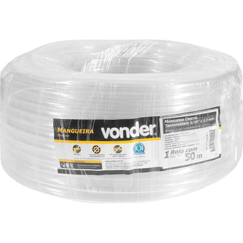 Conteúdo Embalagem:1 Rolo com 50 metrosDestaques e diferenciais:Permite fácil visualização do fluído conduzido. Possui flexibilidade e resistência às intempéries.Aplicações e dicas de uso:Utilizada para a passagem de água. Indicada para uso doméstico, construção civil ou indústrias. Não utilizar para combustíveis e/ou outros produtos químicos.Características Técnicas:Diâmetro interno da mangueira: 5/16 - 7,9 mm Cor da mangueira: Transparente Material da mangueira: PVC Espessura da parede da mangueira: 1,5 mmGarantia: legal: 90 dias + contratual: 3 meses Marca: Não Informado
