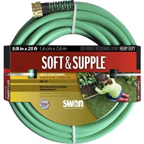 Swan Products SNSS58025 Mangueira de água de bobina macia e flexível fácil com acoplamentos à prova de esmagamento 25' x 5/8", verde